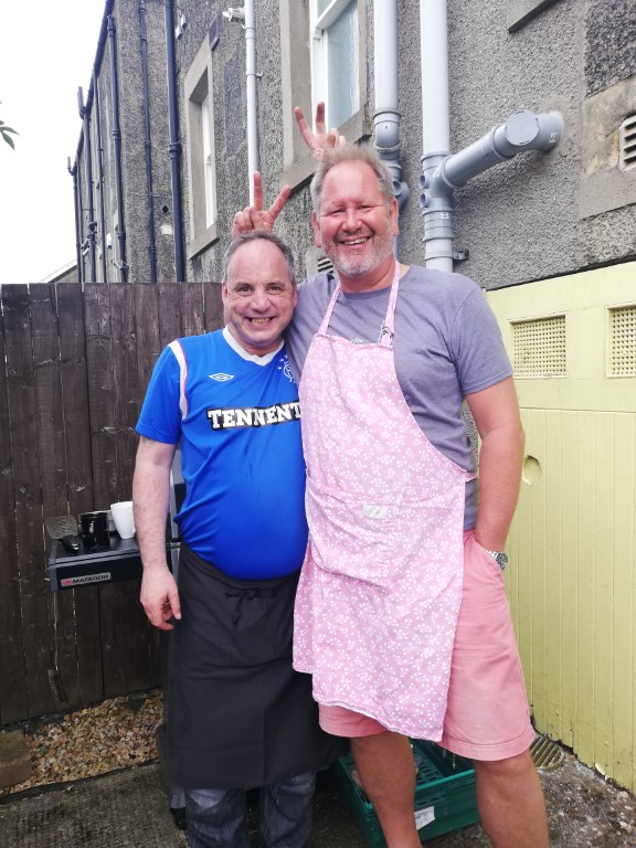 Firstly, a very heartfelt thank you Julie Stokes who works at Tesco Fire Station, Dunfermline. Year on year Julie has very kindly organised the donations of food for our BBQ from Tesco – thank you! You can see Julie pictured on the left with Barbara, one of our Development Workers.